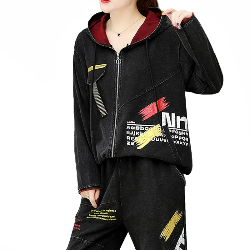 Special Offer 2021ファッション韓国の女性パンクトップスパンツ2枚組パーカー特大ヴィンテージラウンジ摩耗トラックスーツ服 Discount (47%OFF) Today!