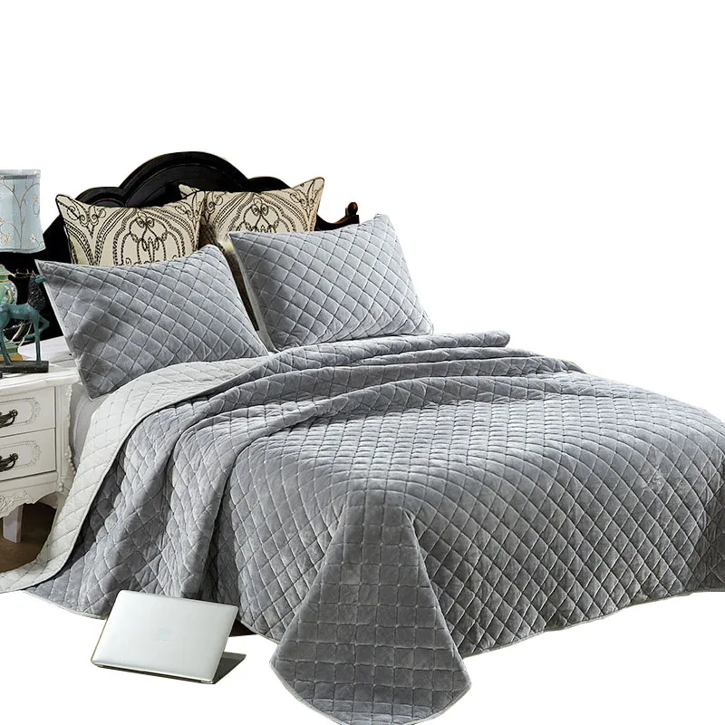 Product Name: Chausub冬の綿ベッドカバーキルトセット3個刺繍豪華なキルトキルティングベッドカバー枕王クイーンサイズ